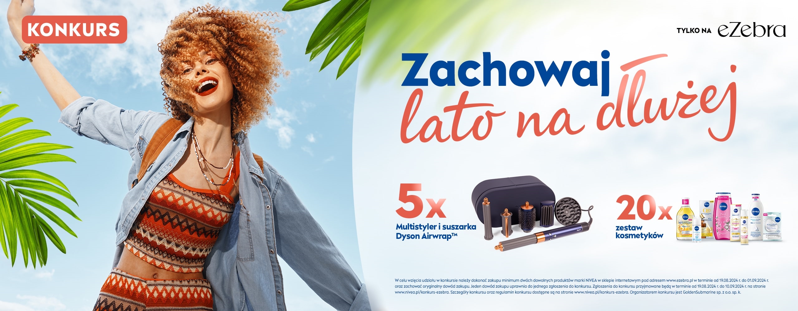 Kup 2 dowolne produkty NIVEA w drogerii internetowej ezebra.pl w okresie 19.08-1.09.2024 r. i zachowaj dowód zakupu.