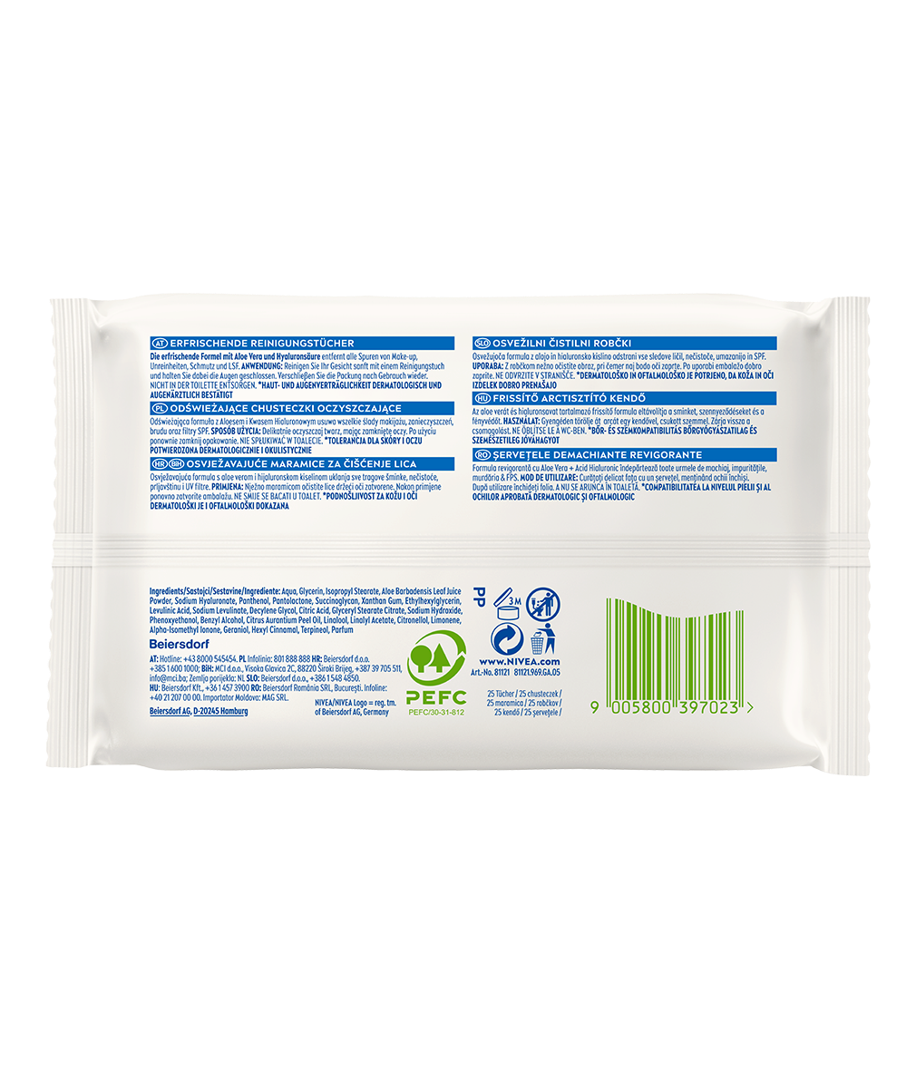 3w1 Odświeżające chusteczki oczyszczające NIVEA to idealny produkt dla cery normalnej i mieszanej. Chusteczki dokładnie oczyszczają i usuwają makijaż, zanieczyszczenia i brud pozostawiając skórę miękką i gładką.