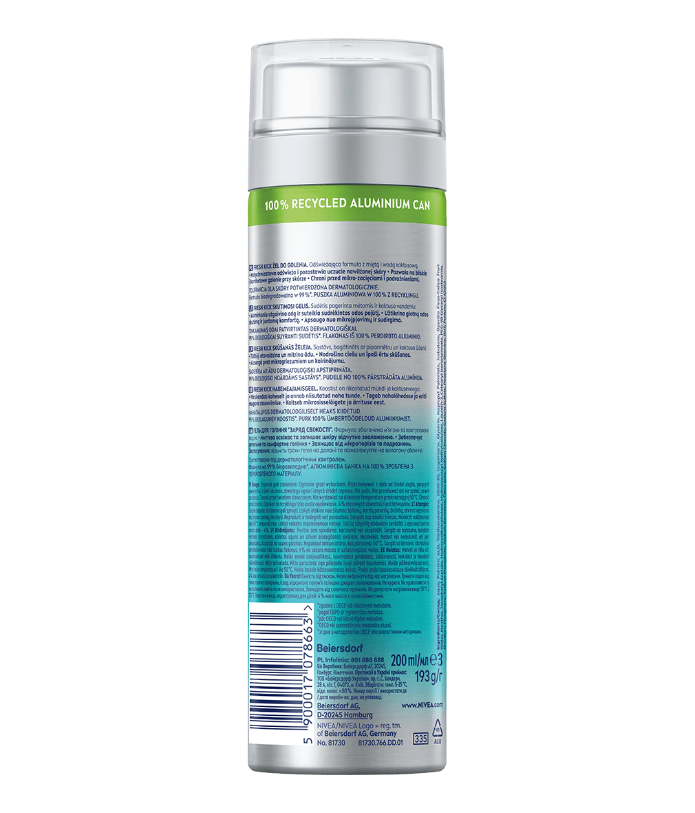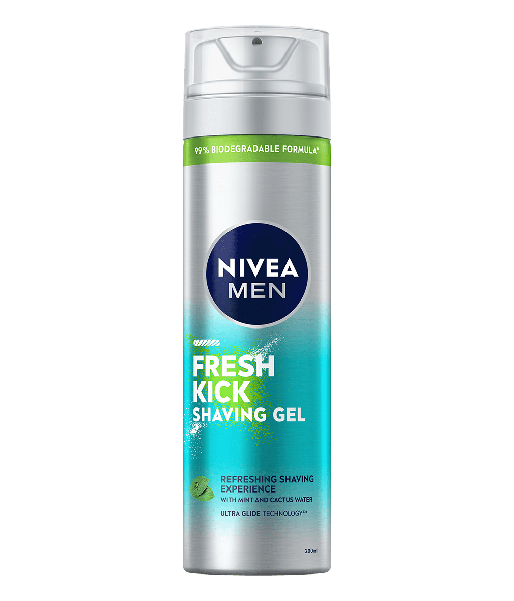 NIVEA MEN FRESH KICK ŻEL DO GOLENIA jest wzbogacony o miętę i wodę kaktusową dla natychmiastowego odświeżenia i uczucia nawilżonej skóry. Chroni przed mikro-zacięciami oraz podrażnieniami. Tolerancja dla skóry została potwierdzona dermatologicznie.