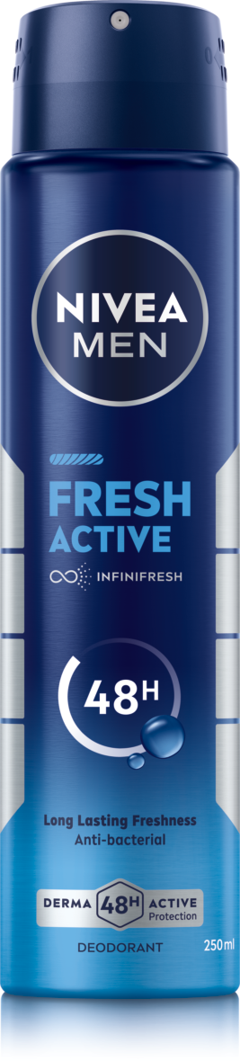 - NIVEA MEN Fresh Active Dezodorant z formułą INFINIFRESH zapewnia 48h ochronę przed potem i nieprzyjemnym zapachem