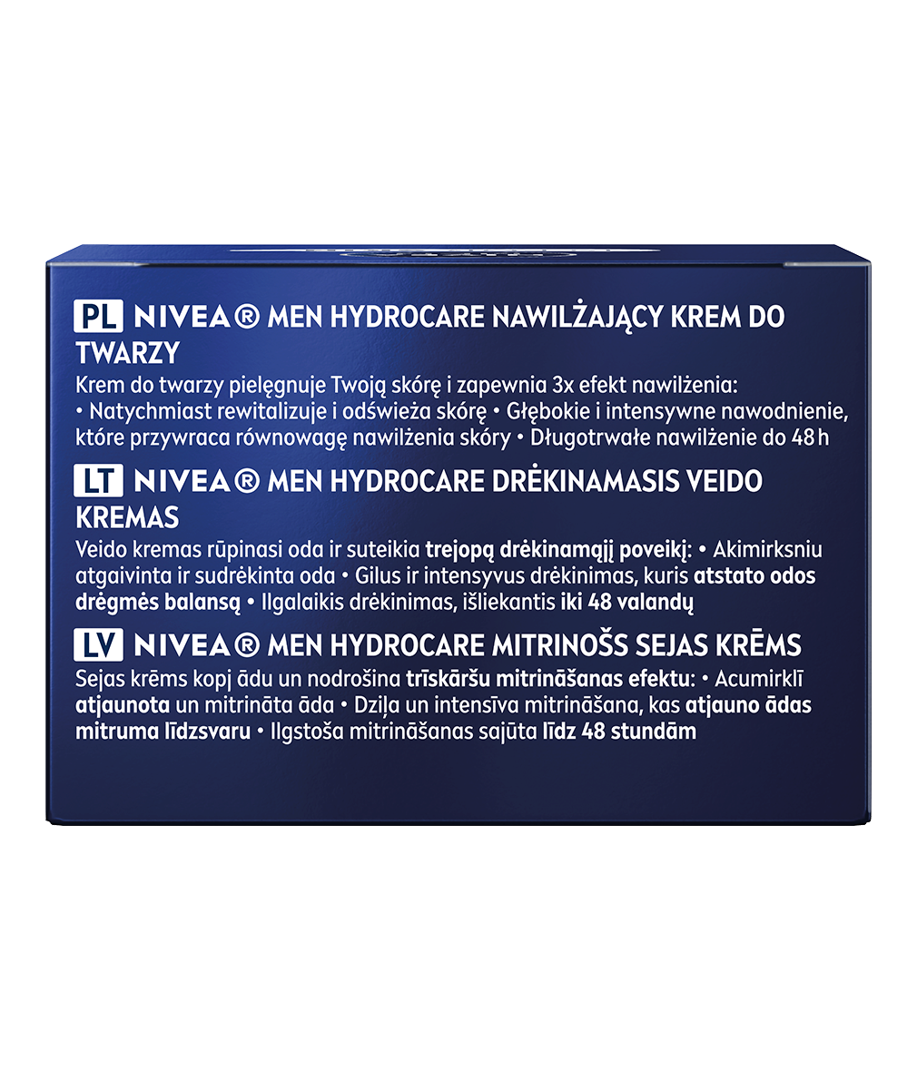 NIVEA MEN HYDROCARE Krem do twarzy to bogata formuła kremu z ekstraktem z aloesu została stworzona specjalnie dla mężczyzn, którzy potrzebują intensywnego nawilżenia. Skóra pozostaje odżywiona i gładka, bez uczucia tłustości do 48h.