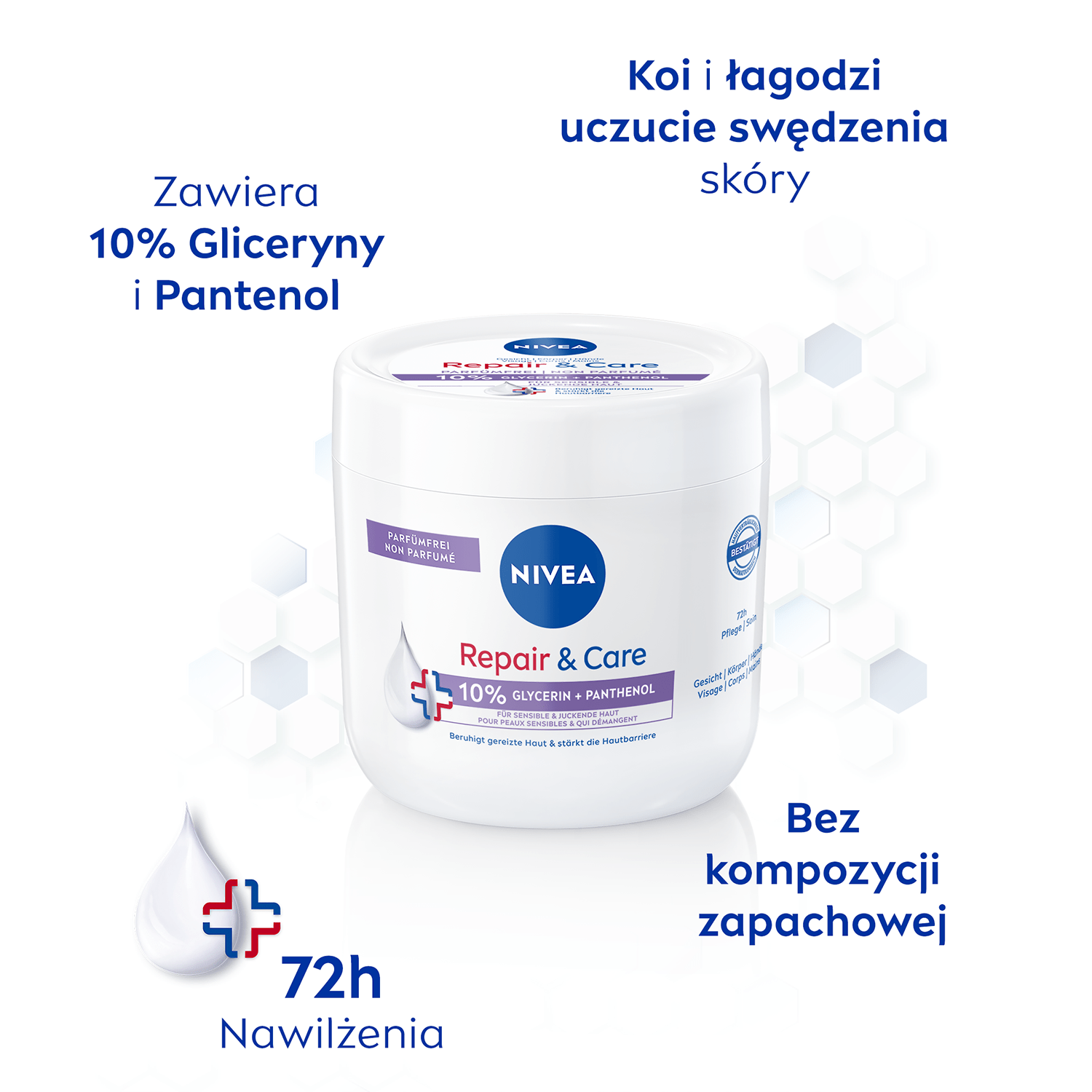 - Zapewnia do 72 godzin nawilżenia skóry