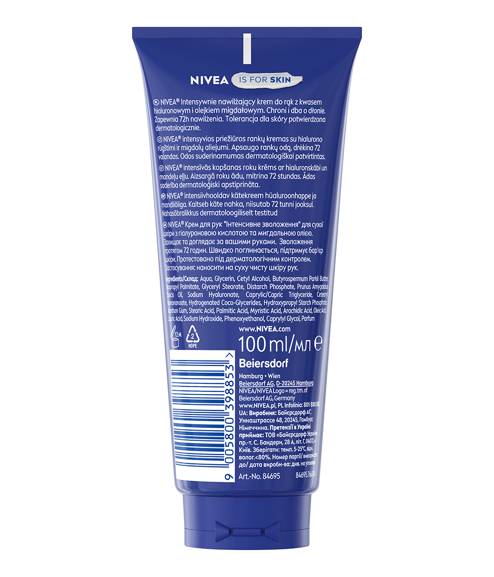 Intensywnie nawilżający krem do rąk z kwasem hialuronowym i olejkiem migdałowym dla ochrony Twoich dłoni. Zapewnia 72 godzinną pielęgnację, szybko się wchłania i odżywia skórę. Odpowiedni dla skóry suchej.