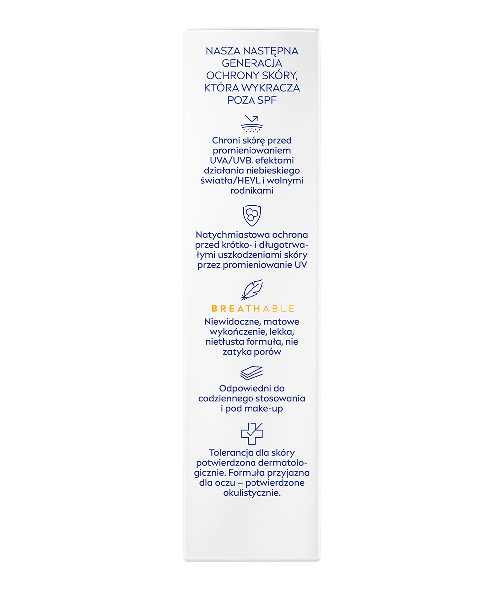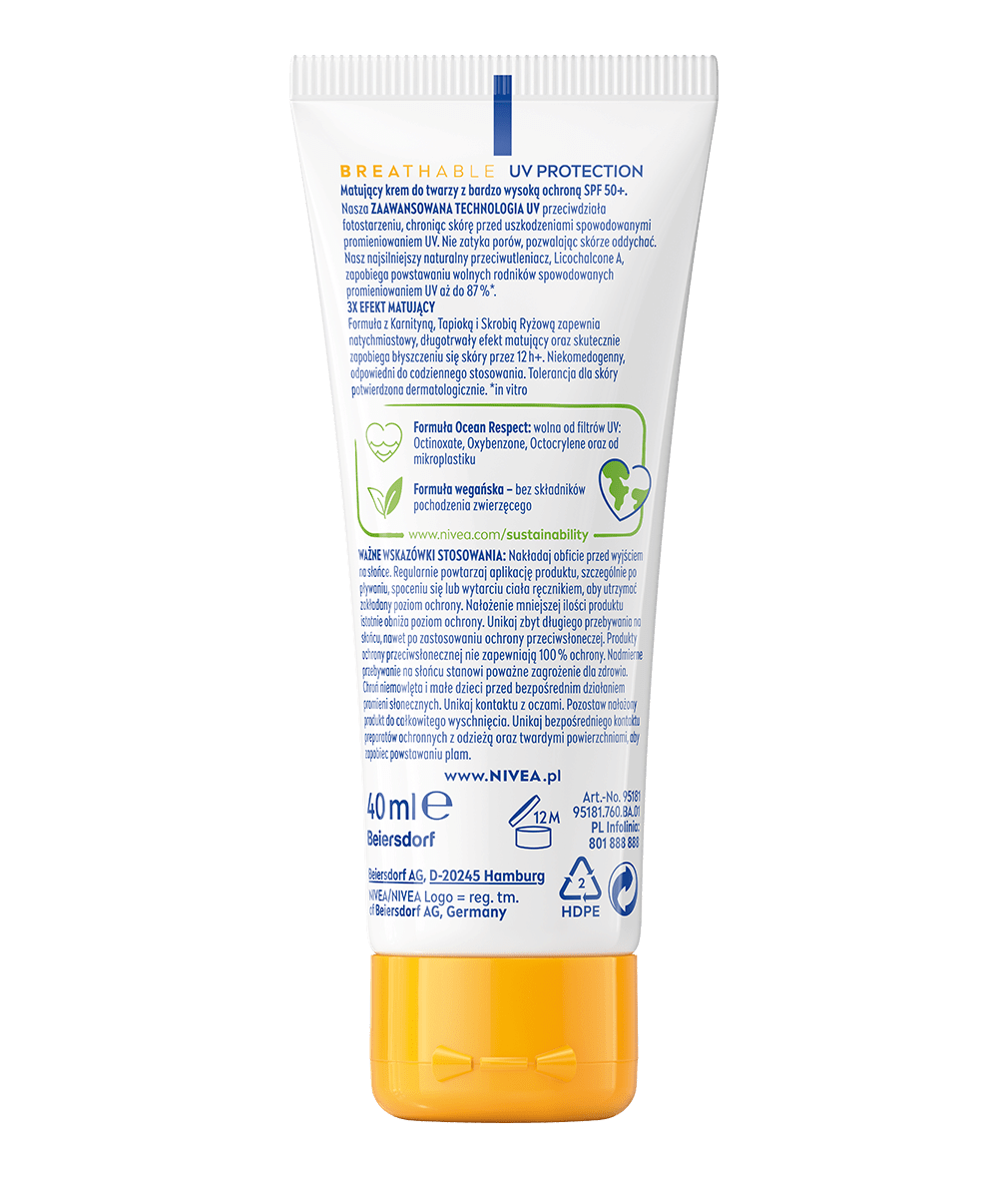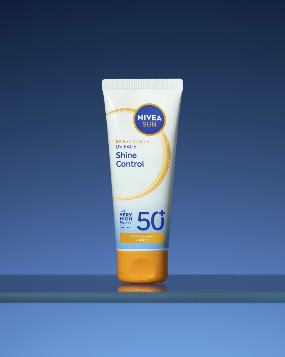 NIVEA SUN Breathable UV Face Shine Control Matujący krem do twarzy z bardzo wysoką ochroną SPF 50+ chroni przed fotostarzeniem, zapewnia do 12h kontroli sebum i widocznie zmniejsza pory – bez obciążania skóry.