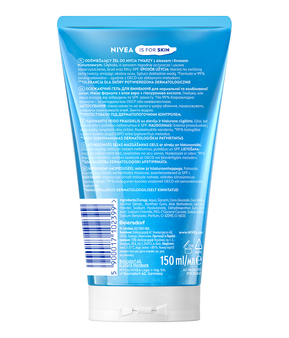 Podane składniki odpowiadają aktualnie produkowanej serii. W NIVEA jednak nieustannie rozwijamy nasze produkty i prowadzimy różne badania, dzięki czemu nasze receptury wciąż są ulepszane.