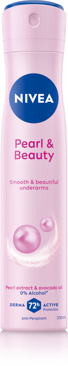 Wypróbuj antyperspirant w spray'u NIVEA Pearl & Beauty. Gładka i piękna skóra pod pachami – zawiera wyciąg z pereł i olejek z awokado. Niezawodna 72h ochrona antyperspirantu i pielęgnacja skóry pod pachami. Ochrona antyperspirantu i piękno, które można zobaczyć i poczuć!