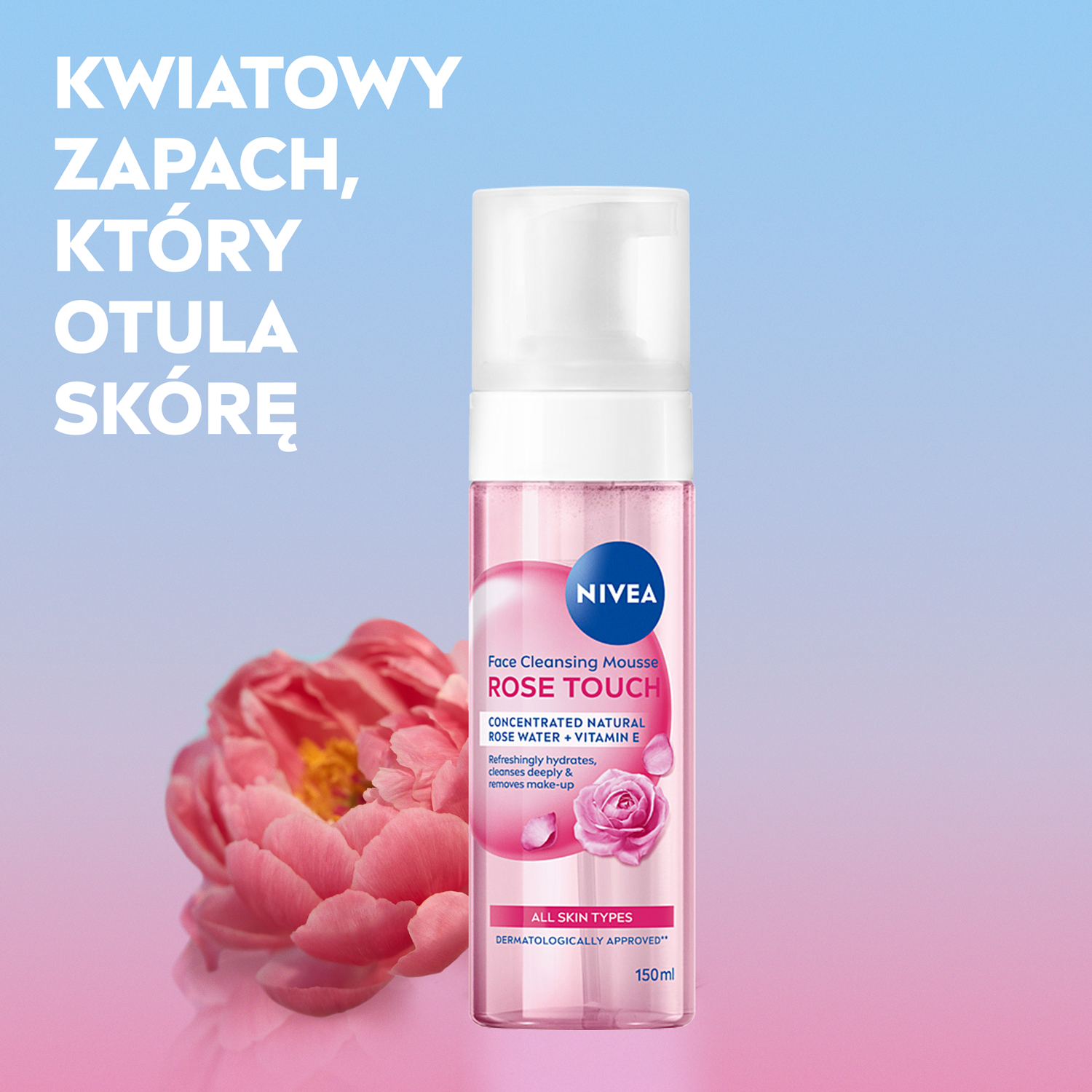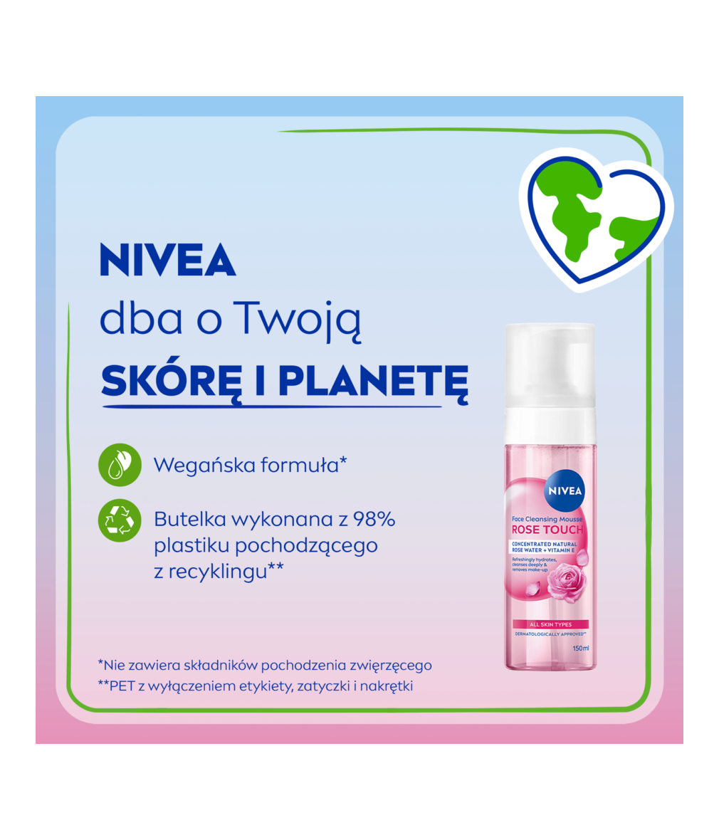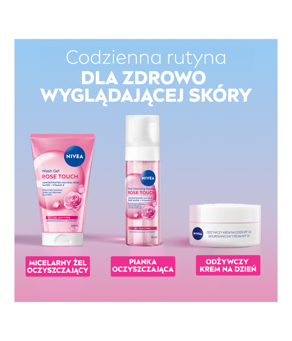 NIVEA ROSE TOUCH PIANKA OCZYSZCZAJĄCA z formułą wzbogaconą organiczną wodą różaną oraz technologią micelarną dba o odpowiedni poziom nawilżenia, jednocześnie dogłębnie oczyszczając skórę i przygotowując ją do kolejnego etapu pielęgnacji.
