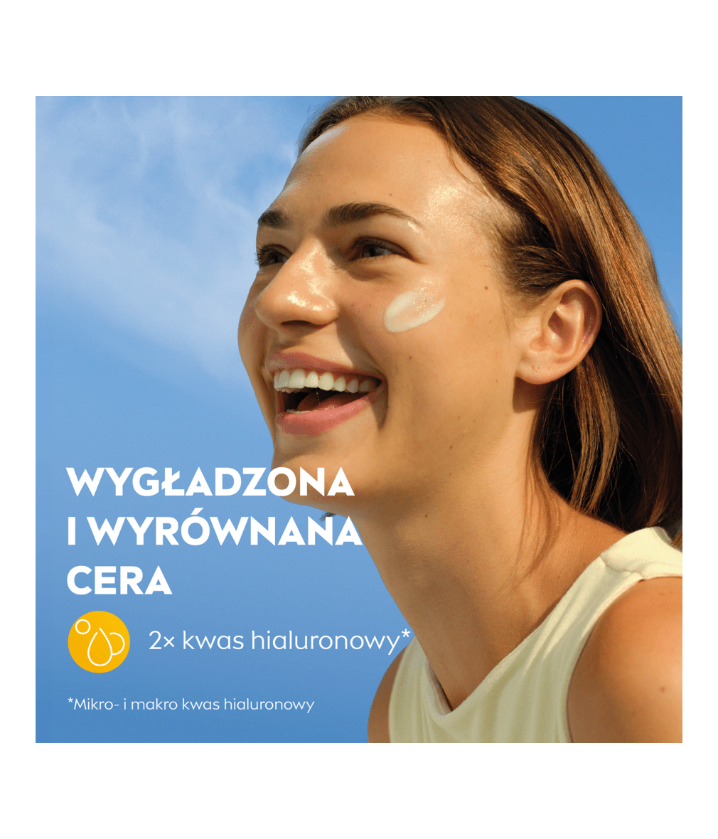 - Wzbogacony o dwa typy kwasu hialuronowego oraz Licochalcone A, skuteczny antyoksydant