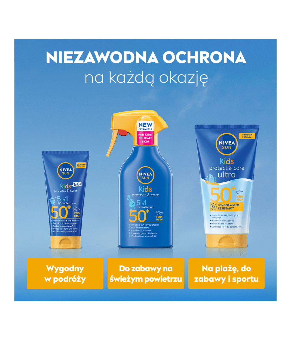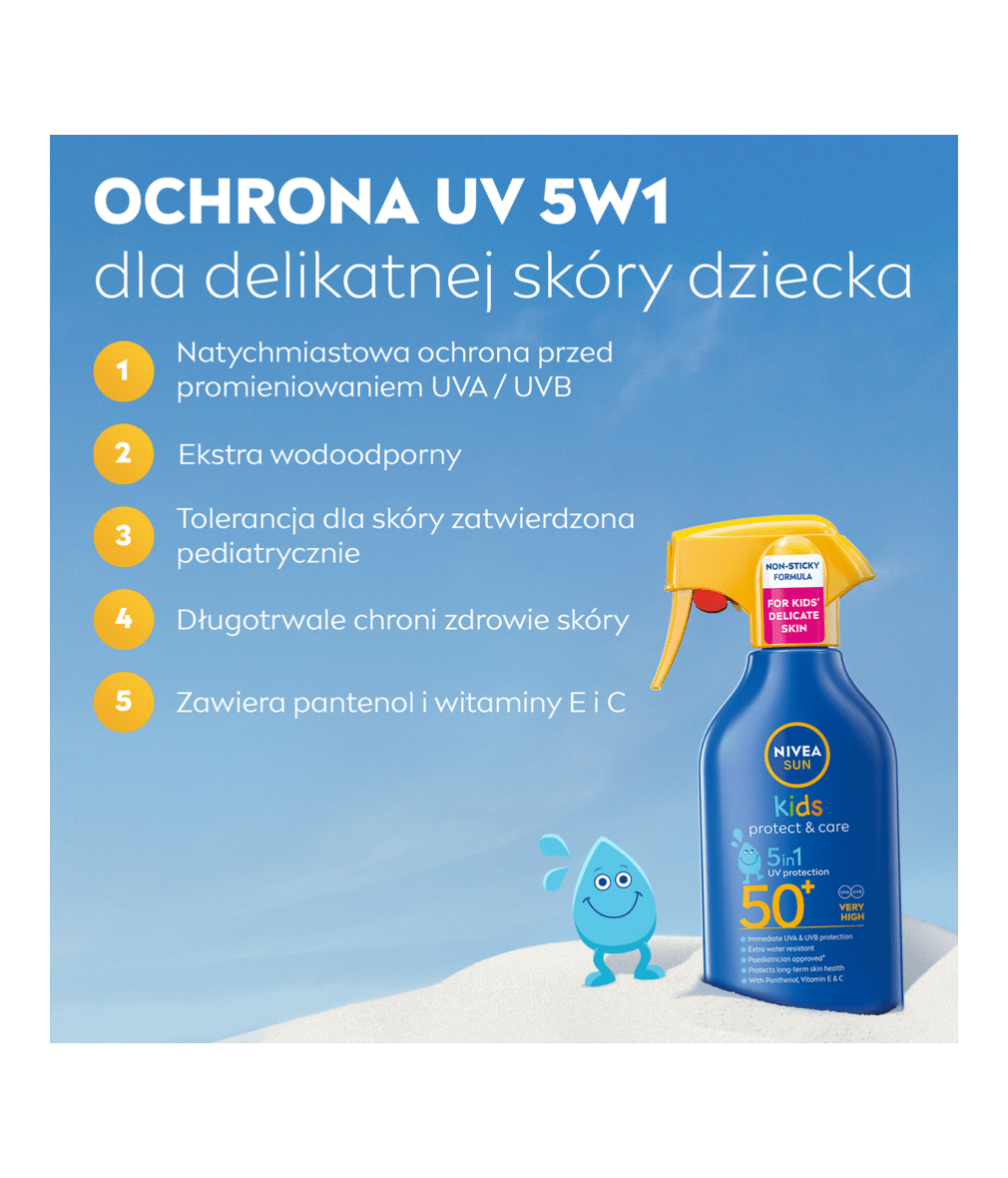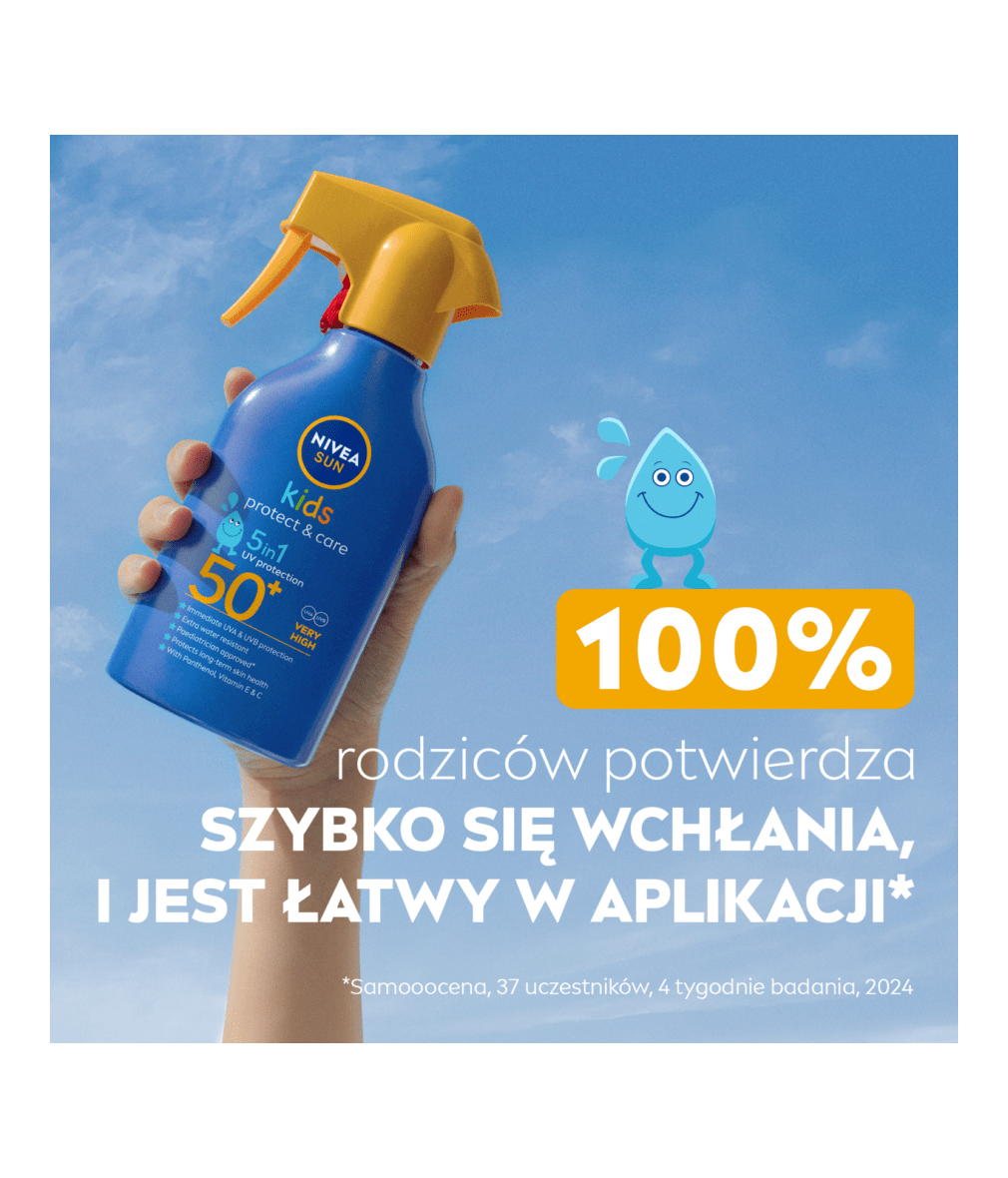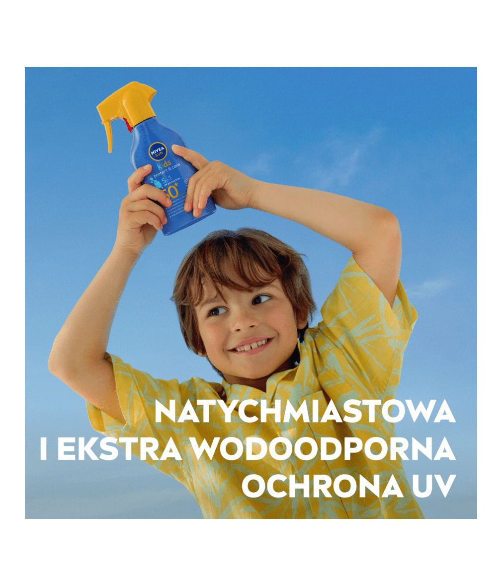 Spray do opalania dla dzieci NIVEA Kids SPF 50+ zapewnia najwyższą ochronę delikatnej skóry maluchów przed słońcem, jednocześnie pielęgnując ją dzięki organicznemu olejowi migdałowemu. Biodegradowalna formuła i ekologiczne opakowanie łączą skuteczną ochronę UV z troską o środowisko.