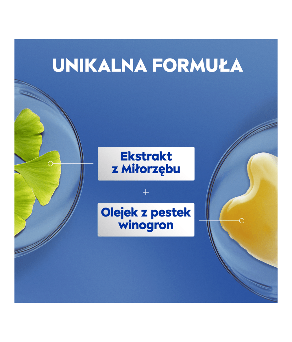 - Zawiera ekstrakt z miłorzębu i olejek z pestek winogron