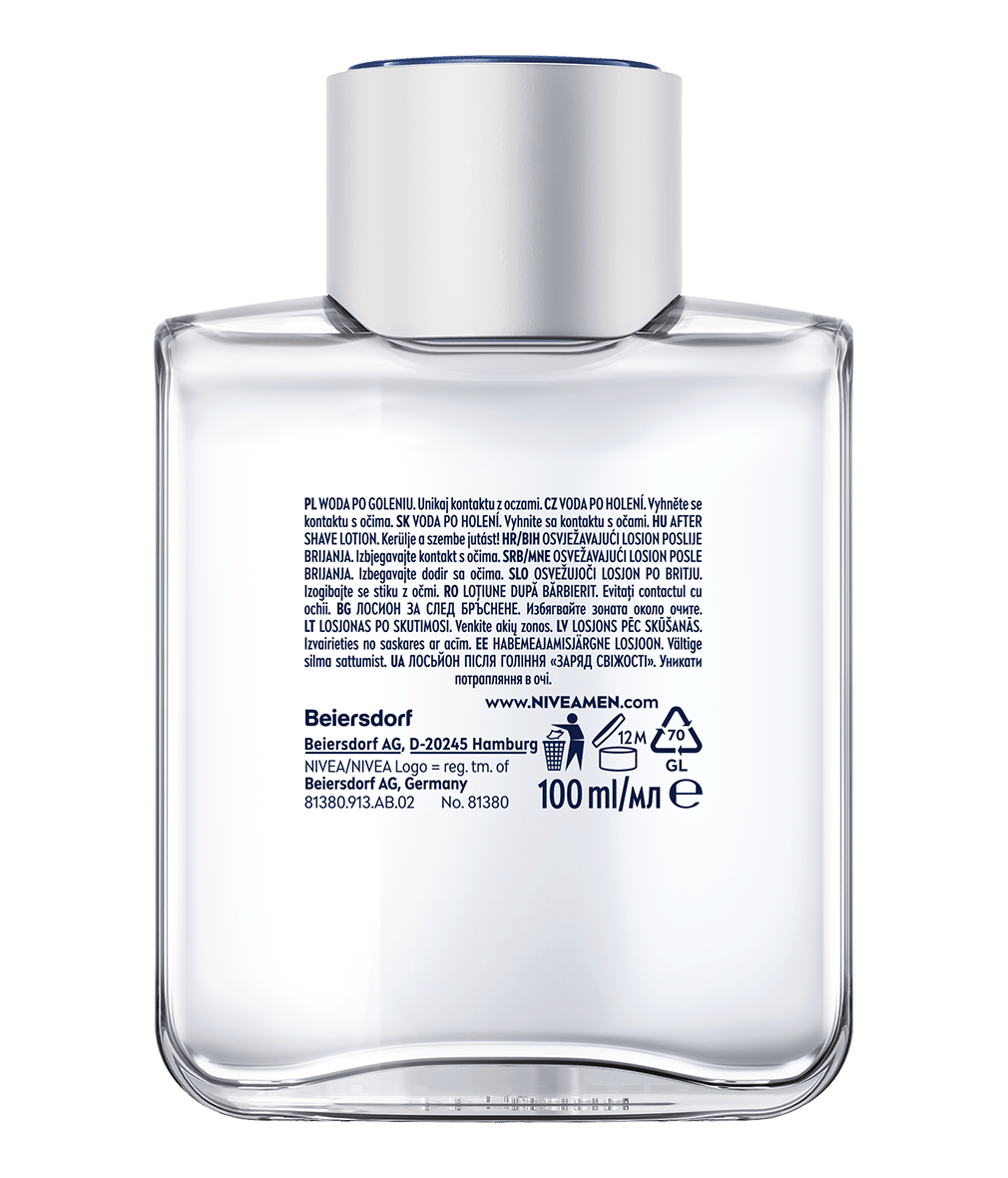 NIVEA MEN FRESH KICK WODA PO GOLENIU Nowa formuła z miętą oraz wodą kaktusową natychmiastowo odświeża skórę po goleniu, dodatkowo ją nawilżając przez 24 godziny. Sposób użycia: Nałóż obficie na skórę po goleniu omijając okolice oczu. Aby zachować zdrowy i zadbany wygląd skóry, regularnie stosuj kosmetyki przeznaczone do pielęgnacji skóry mężczyzn z szerokiej gamy produktów NIVEA MEN z linii Fresh Kick: Odświeżającą piankę do golenia czy żel do golenia oraz Krem-żel nawilżający skórę twarzy, ciała i rąk. Poczuj uderzenie świeżości!