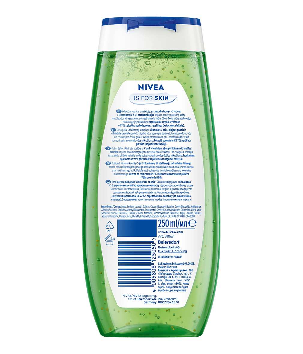 Żel pod prysznic z pielęgnującymi olejkami, o zapachu trawy cytrynowej pielęgnuje, nawilża i pozostawia skórę odżywioną i piękną każdego dnia.