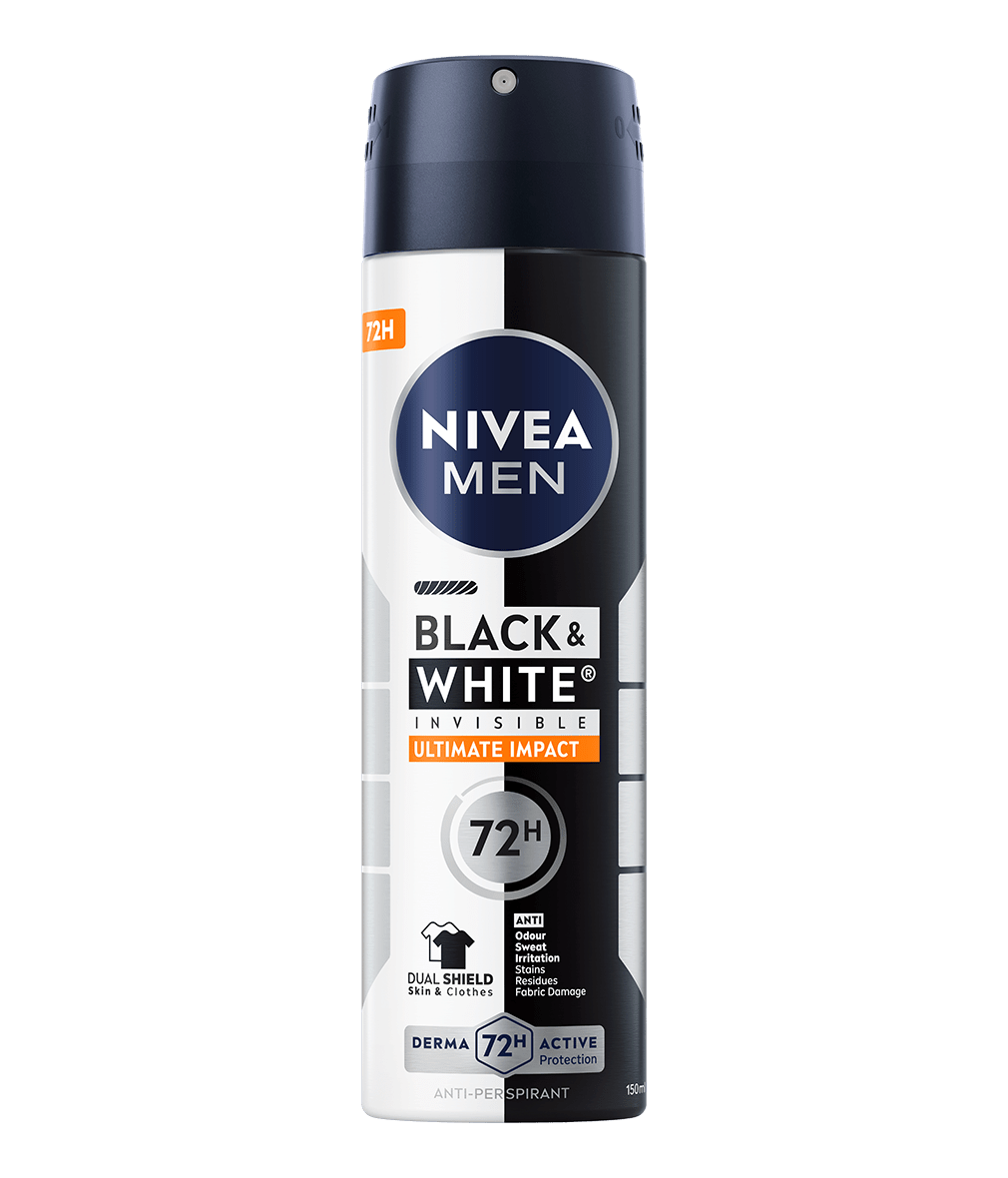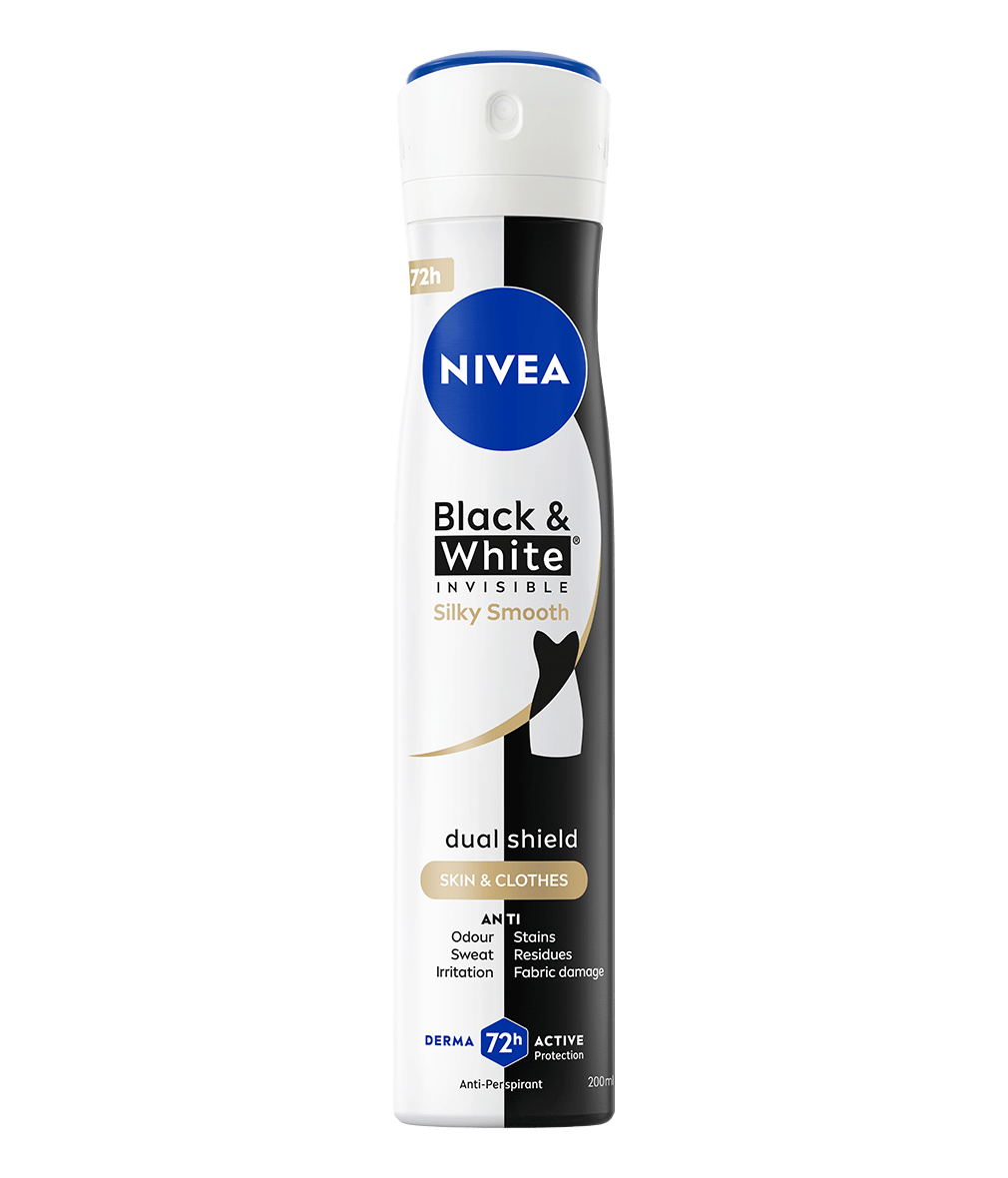 Antyperspirant NIVEA Black&White Invisible Pure zapewnia niezawodną ochronę 5w1 przed nieprzyjemnym zapachem, potem, podrażnieniami, żółtymi plamami na białych ubraniach i białymi śladami na czarnych ubraniach. Niezawodna, 72-godzinna ochrona, która jednocześnie pielęgnuje Twoją skórę.