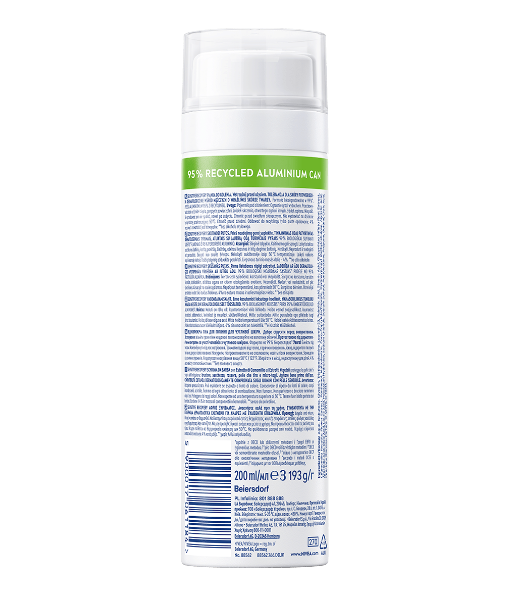 Regenerująca pianka do golenia od NIVEA sprawia, że golenie jest przyjemnością. Łagodzi podrażnienia i chroni skórę przed drobnymi zacięciami. Zawiera kojącą formułę wzbogaconą o naturalny rumianek i ekstrakt roślinny.